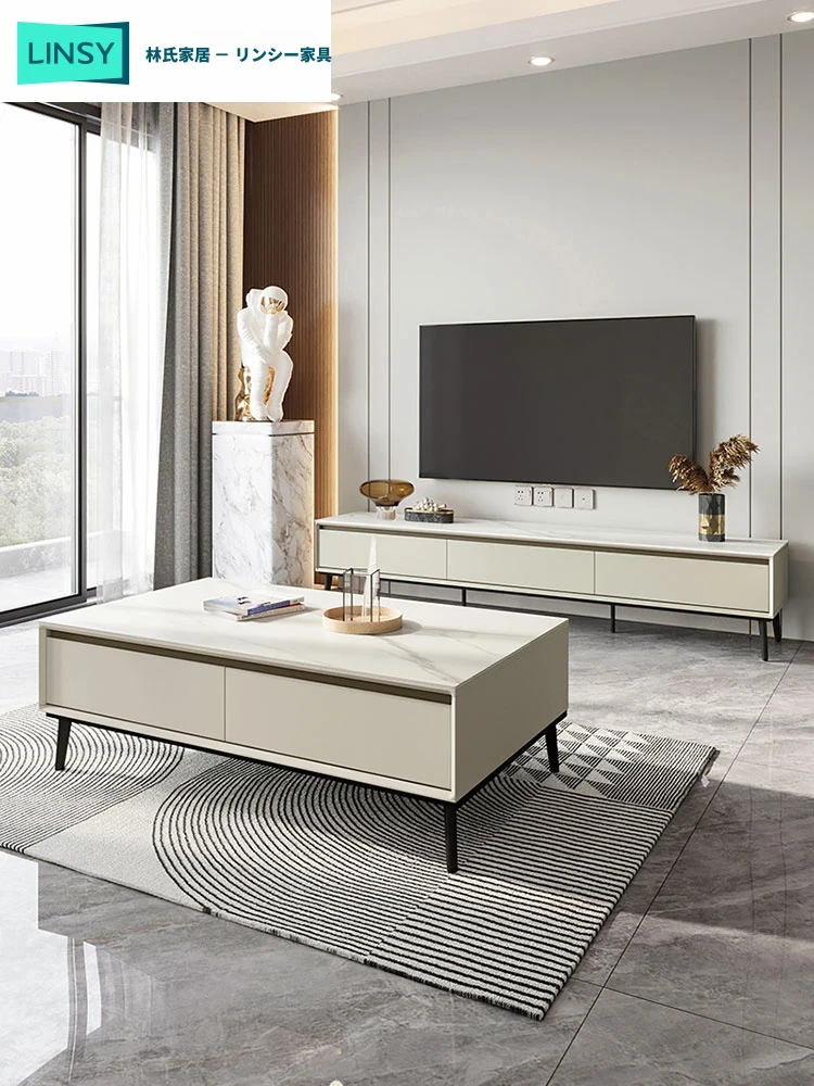 リン氏木業の洗練されたデザイン!イタリアンスタイルの軽やかな大理石リビングテーブル&テレビキャビネットセット、小型住居にぴったり。クラシックな美しさと収納力を兼ね備えたSK4L、あなたのリビングを格上げします!