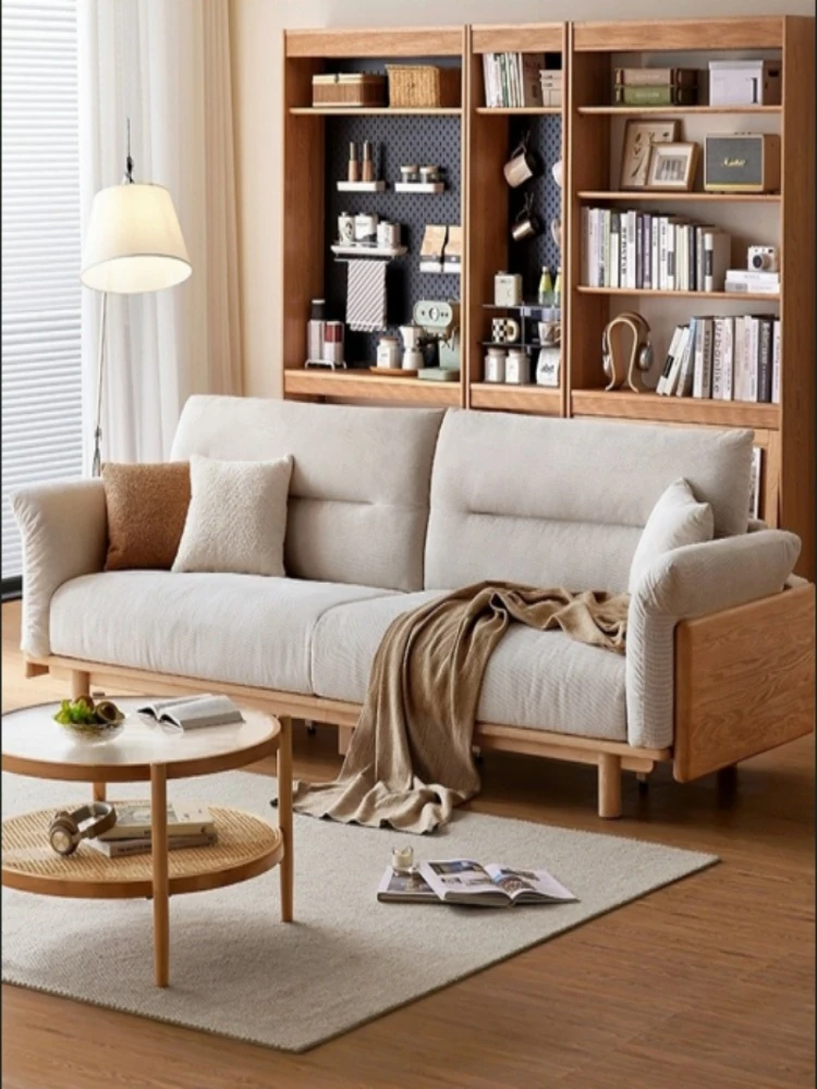 "2024 New Lin's Solid Wood Sofa - Government Subsidized, Cream-Style Design for Small Spaces, Perfect for Your Living Room"
