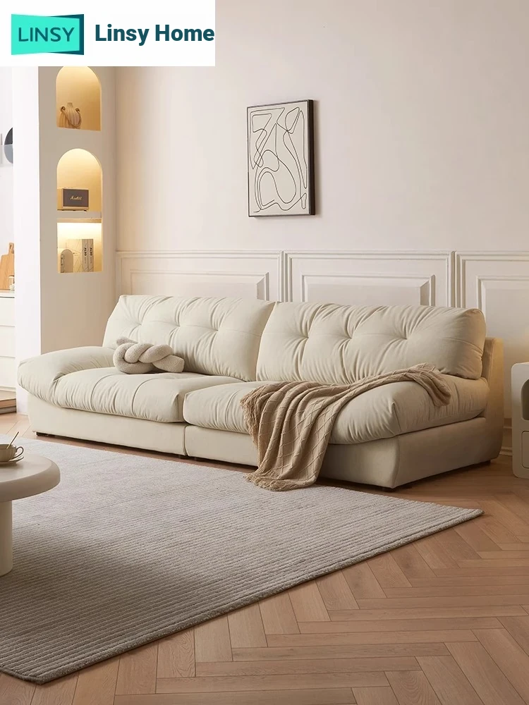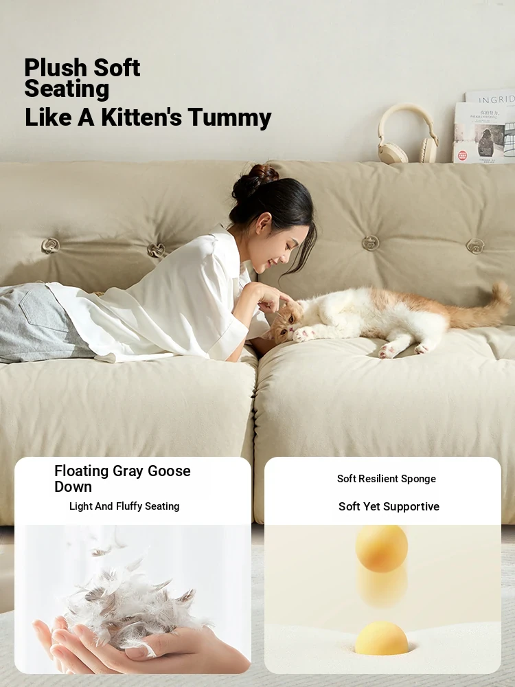 "Government-Subsidized Lin's Home Creamy Cloud Sofa - 2024 New Style for Small Spaces, Cat-Friendly Fabric Living Room Furniture"