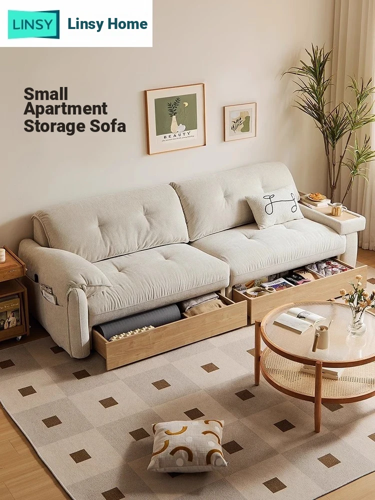"Government Subsidized Lin's Modern Minimalist Faux Cotton Linen Elephant Ear Storage Sofa for Living Room - Stylish and Functional Wooden Furniture"