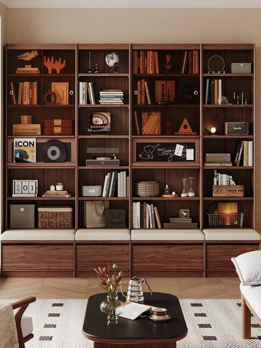 "Government Subsidized Linshi Home Retro Booth Bookshelf - Walnut Color Full Wall Floor Cabinet for Living Room"