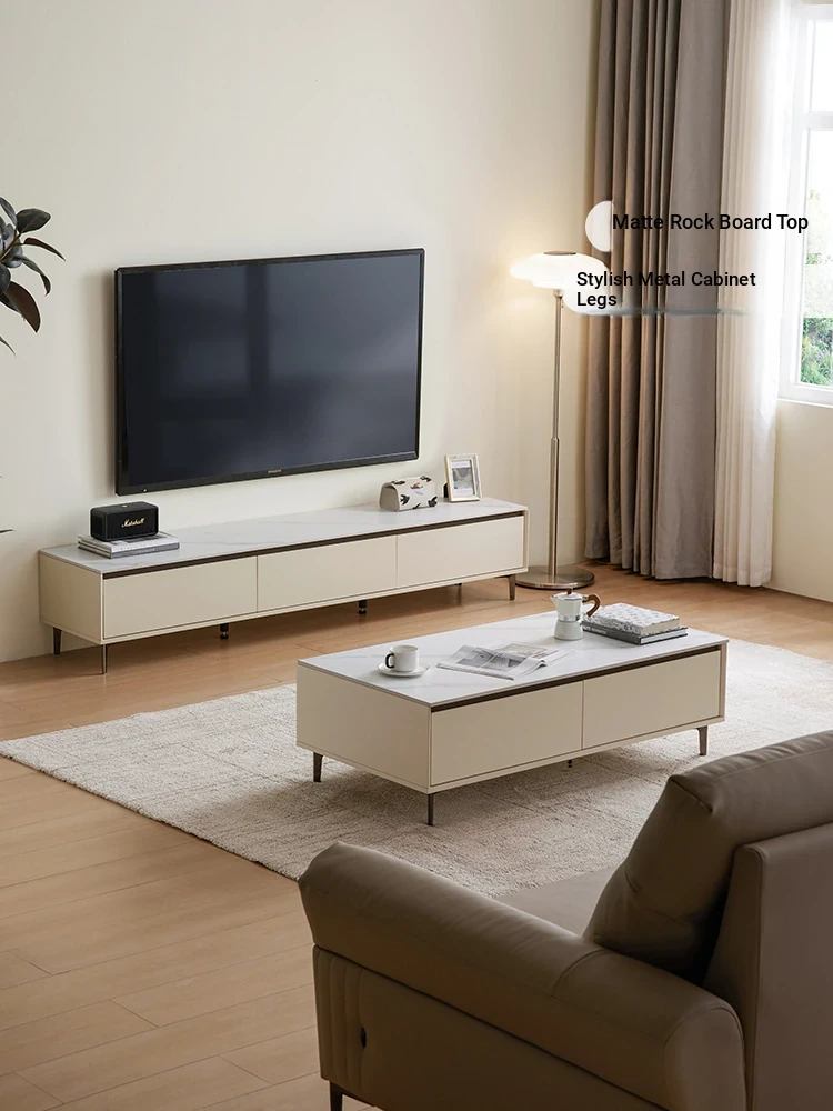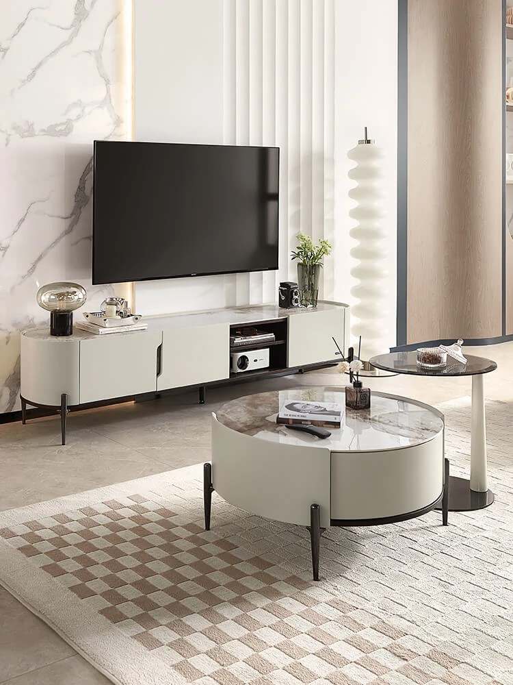 LINSY Modern Minimalist Rock Plate TV Cabinet and Coffee Table Set for Small Living Rooms - Stylish and Functional Furniture by LINSY Woodworks NV1M