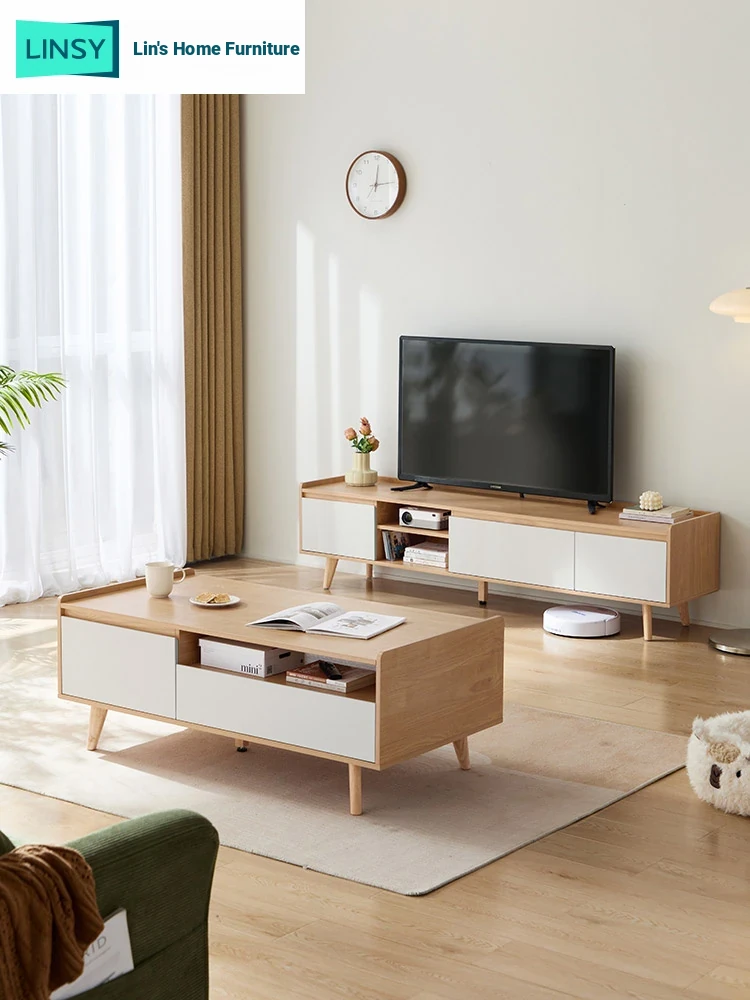 Linsy Modern Minimalist Floor-standing TV Cabinet and Coffee Table Set - 2025 New Arrival for Living Room, Stylish Home Furniture by Linsy Wood Industry