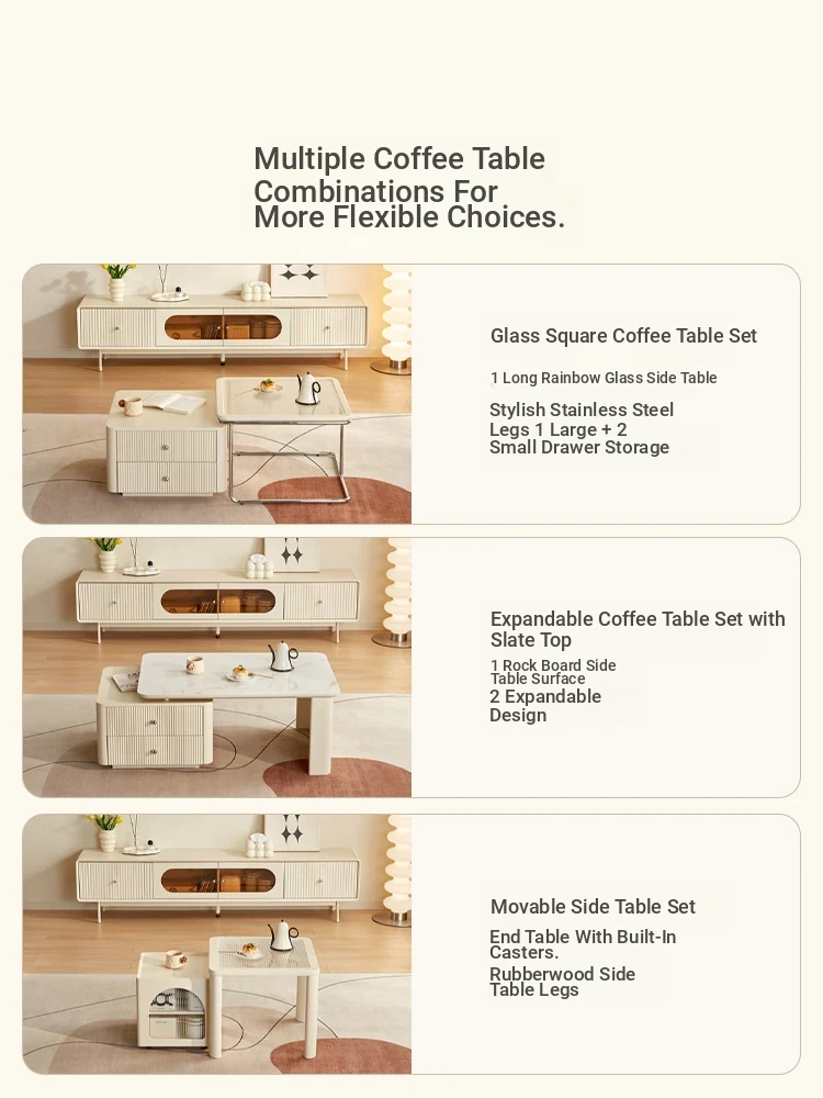 Linsy Home Creamy Style TV Stand and Coffee Table Set - Elegant Floor Glass TV Cabinet for Living Room - Quality Craftsmanship by Linsy Woodworks