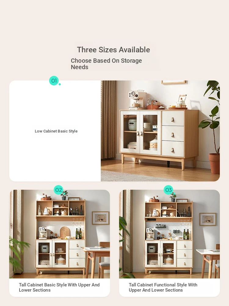 Government-Supported Lin's Home Modern Kitchen Storage - Solid Wood Side Cabinet for Dining, Coffee & Tea Station, Microwave Stand, Functional and Stylish!