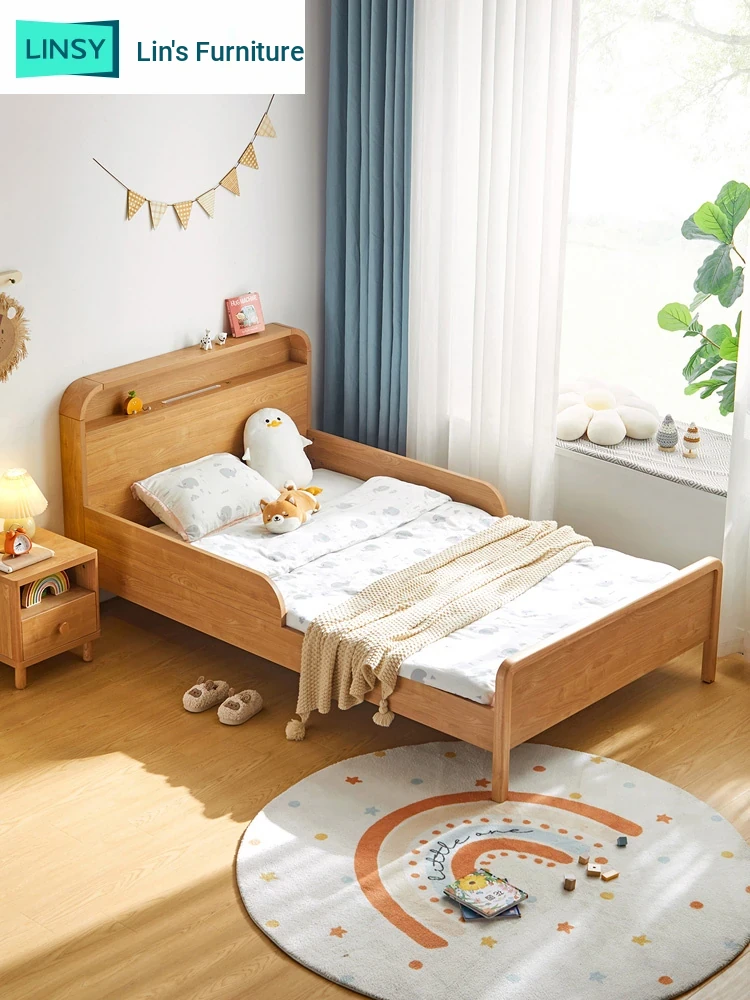"Government-Subsidized Linshi Home All-Wood Solid Children’s Bed for Small Spaces - Perfect for Boys and Girls' Bedrooms, Stylish Princess Design"