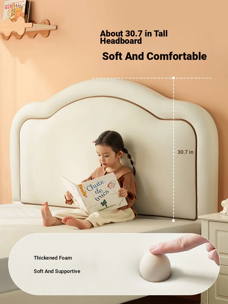 Government Subsidized Lin's Home Creamy Princess Bed for Girls - Solid Wood Single Cloud Bed for Children's Bedroom. Perfect for Creating a Dreamy Space!