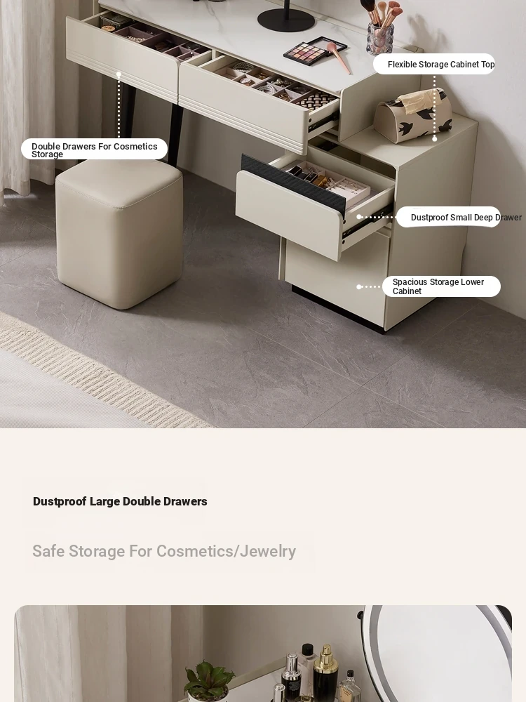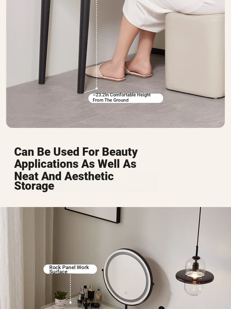 (8) [sub-cabinet] 39.37in makeup table + makeup mirror + makeup stool