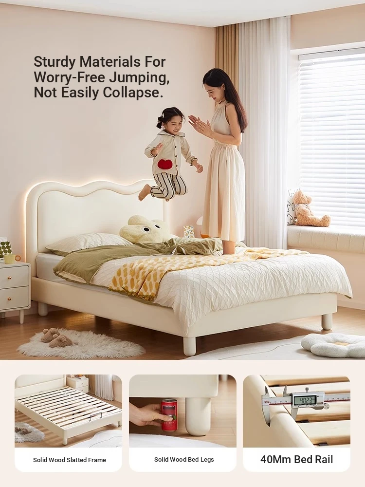 (4) [upgrade top layer cowhide | Cream white] children's bed