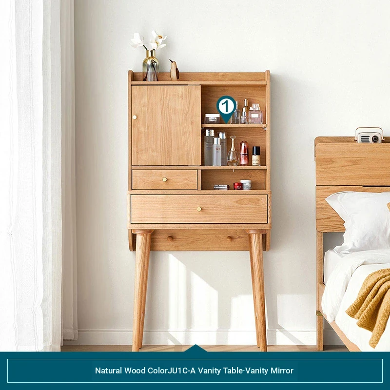 "Lin's Wood Nordic Modern Minimalist Vanity Table for Bedroom – Space-Saving Makeup Desk with Storage Cabinet, Perfect for Small Homes – Model JU1C"