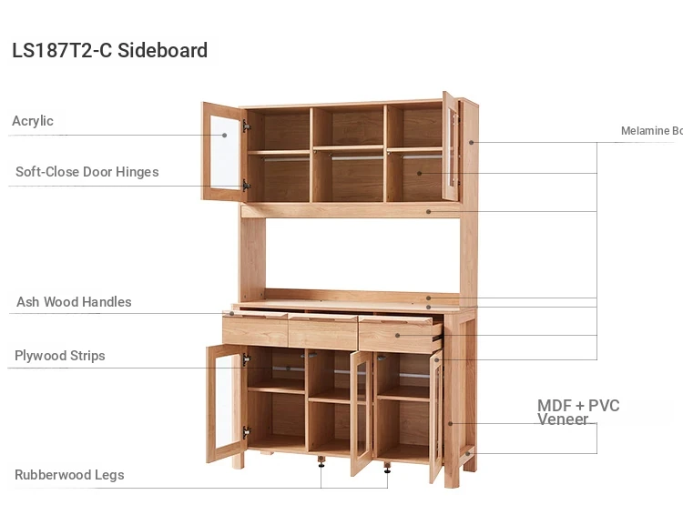 Lin's Woodwork Scandinavian Minimalist Multi-Functional Sideboard - Stylish Buffet Storage Cabinet for Living Room, Tea & Wine Display - Model LS187T2, Perfect for Modern Homes