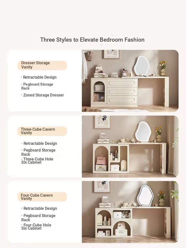 (3) [telescopic | Single | Cave cabinet B] makeup table + makeup mirror + makeup stool A