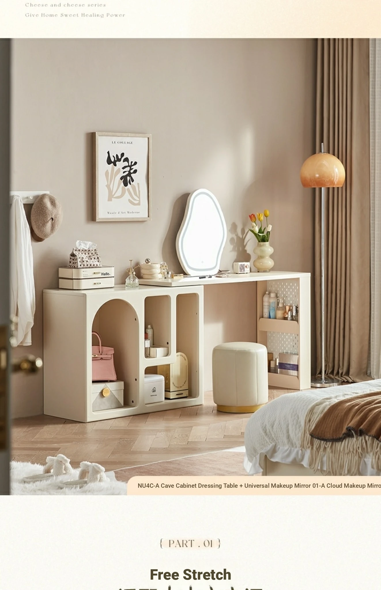 (6) [telescopic | Single | Cave cabinet A] makeup table + makeup mirror + makeup stool B