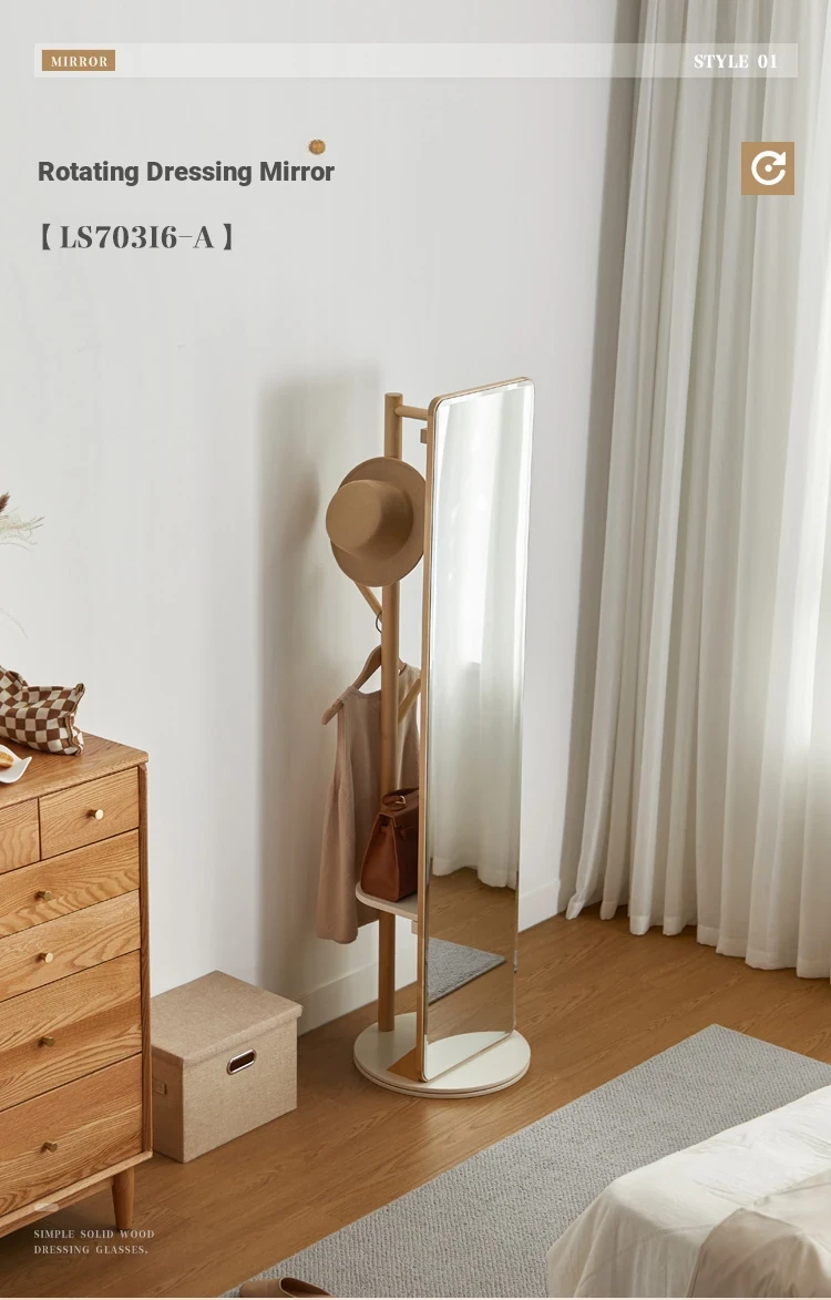 LINSY Solid Wood Full-Length Standing Mirror - Rotatable Dressing Mirror for Bedroom, Perfect for Try-On and Outfit Display