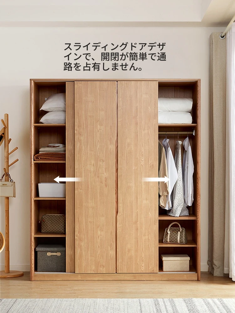Government-Backed Lin's Home Nordic Solid Wood Frame Wardrobe - Stylish and Functional Sliding Door Closet for Your Bedroom, Embrace Natural Elegance!