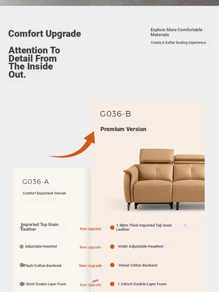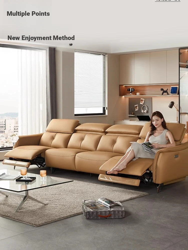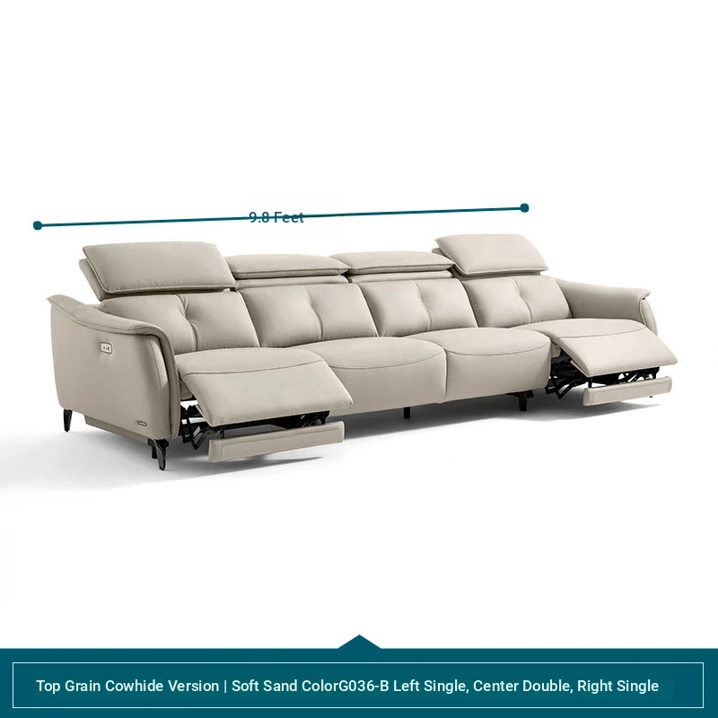 Lin's Design Minimalist Genuine Leather Sofa with Multifunctional Electric Recliner - Stylish and Comfortable Leather Furniture by Lin's Wood Industry G036