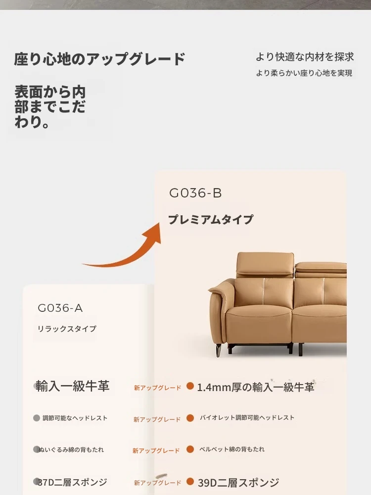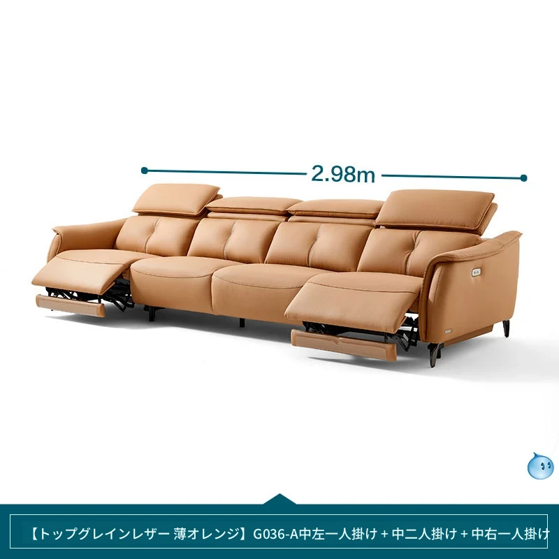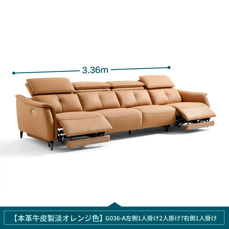 ⑫【シンプルスタイル | ダブル電動 | 3.36メートル大四人用】ライトオレンジソファG036-A