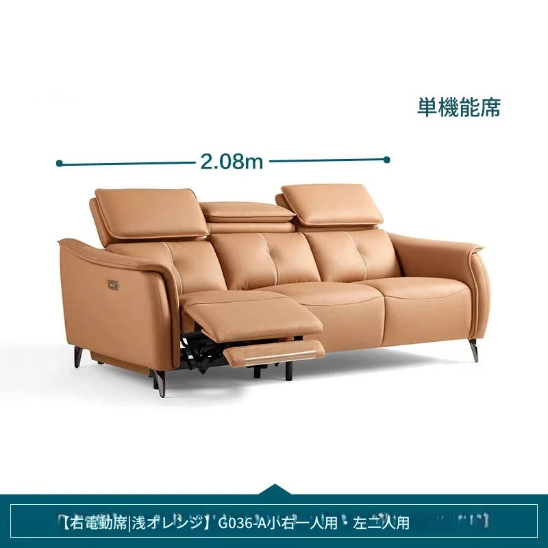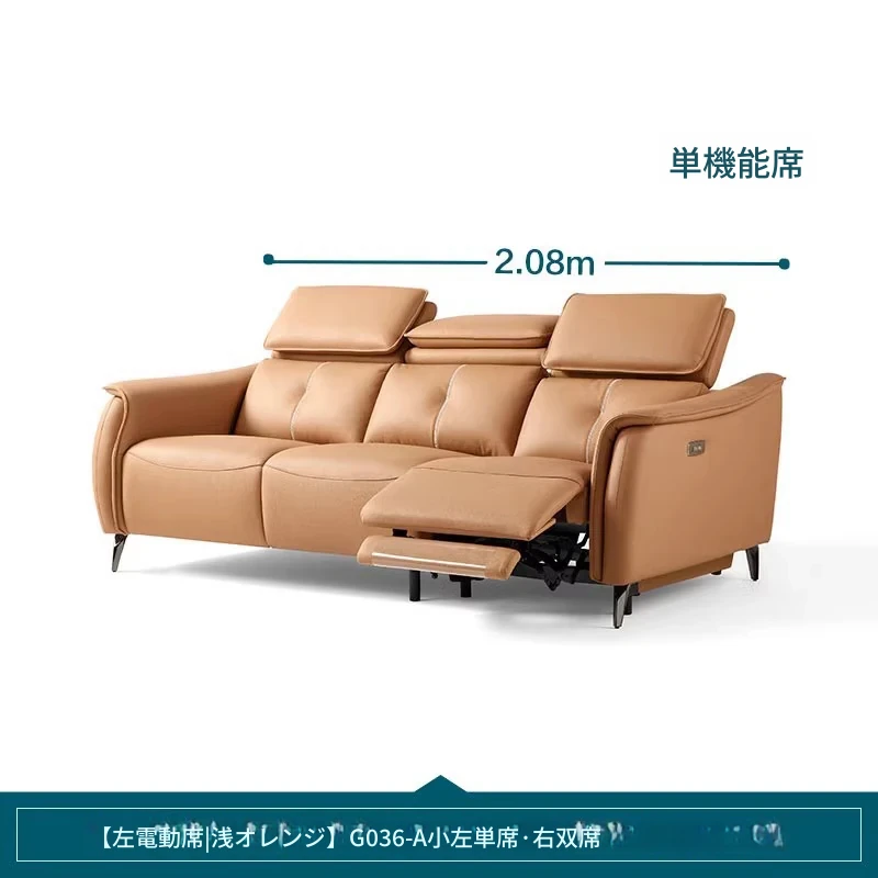 ⑥【シンプルスタイル | 右電動 | 2.08メートル小三人用】ライトオレンジソファG036-A