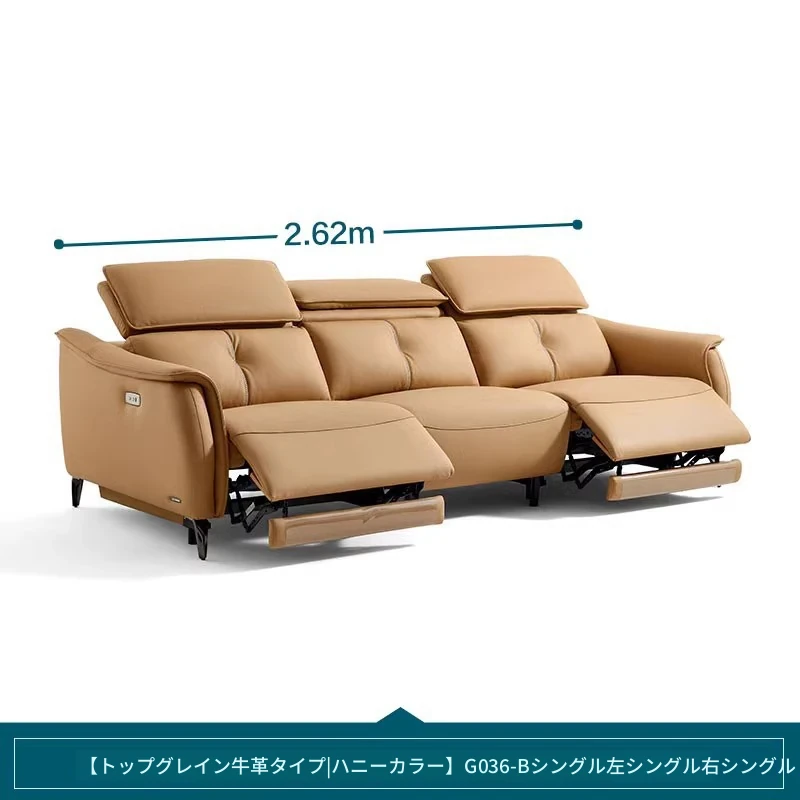 ⑱【ラグジュアリースタイル | ダブル電動 | 2.62メートル三人用】ハニーカラーソファG036-B