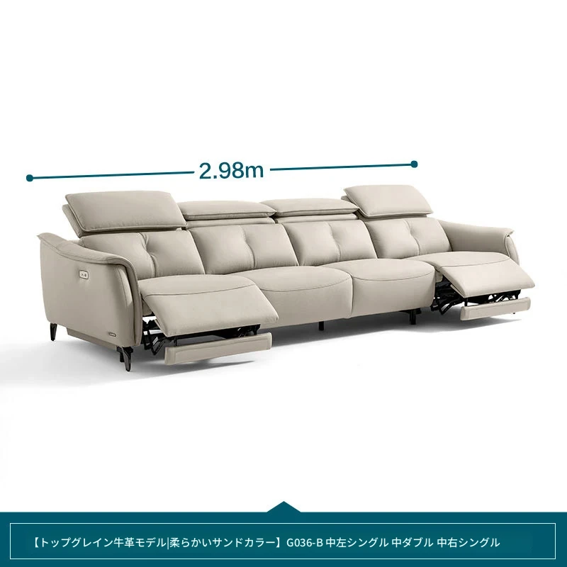 ⑲【ラグジュアリースタイル | ダブル電動 | 2.98メートル大三人用】ソフトサンド色ソファG036-B
