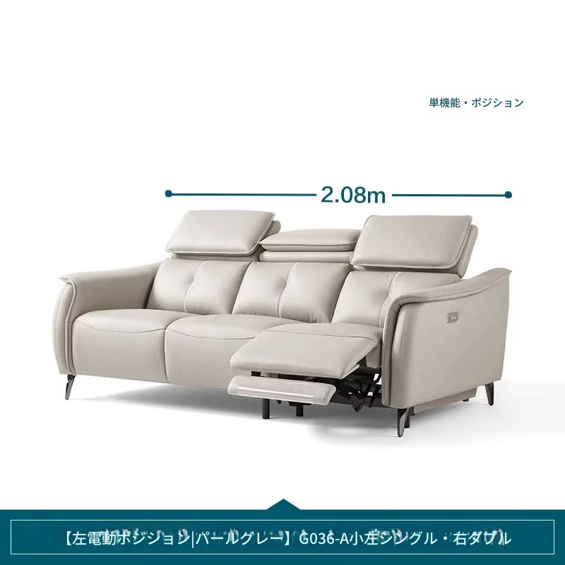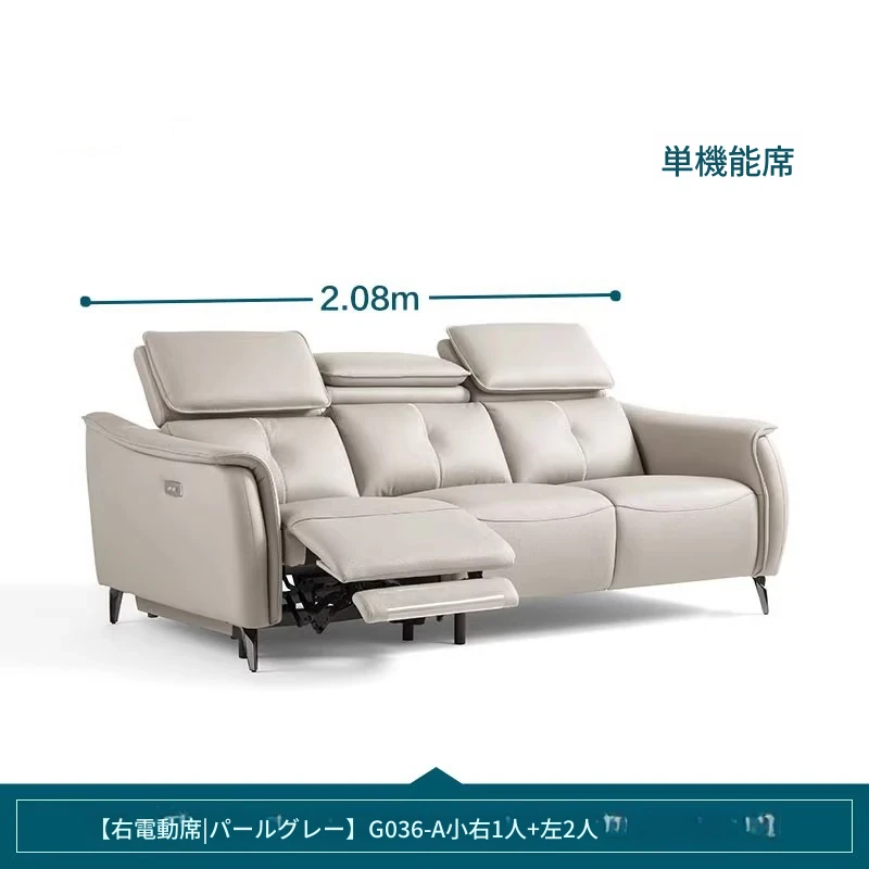 ⑤【シンプルスタイル | 右電動 | 2.08メートル小三人用】パールグレーソファG036-A