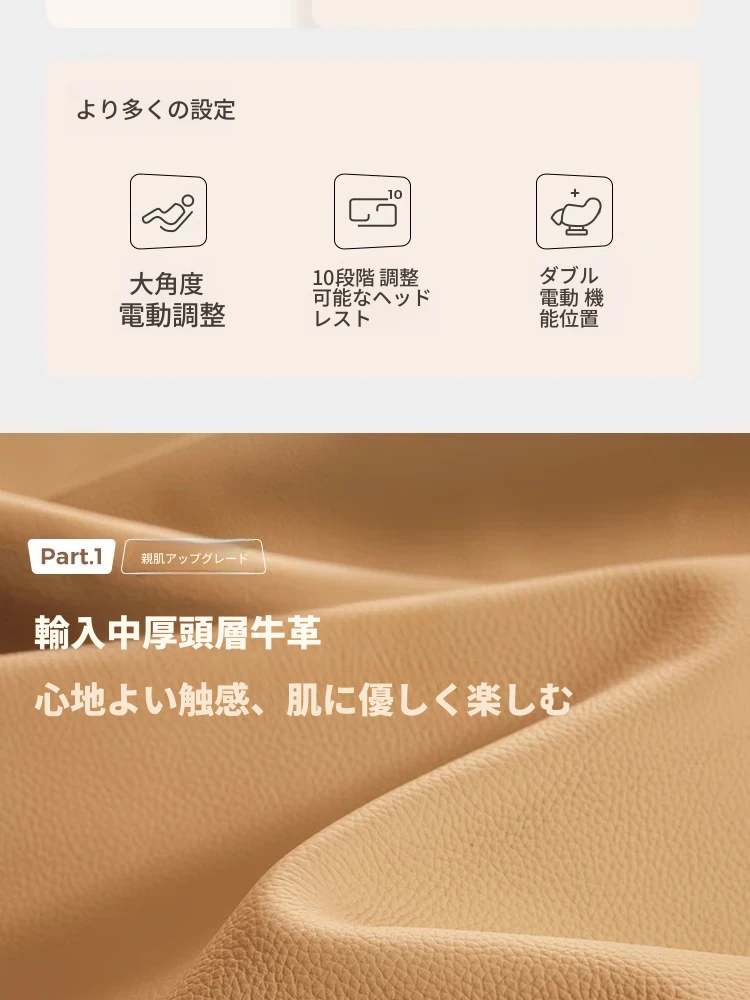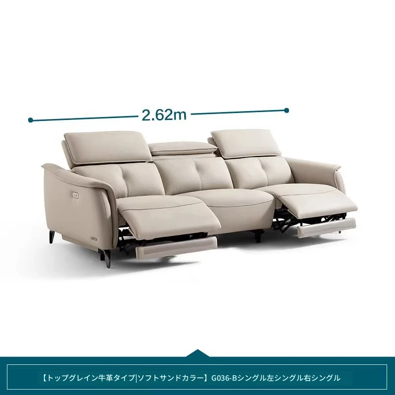 ⑰【ラグジュアリースタイル | ダブル電動 | 2.62メートル三人用】ソフトサンド色ソファG036-B