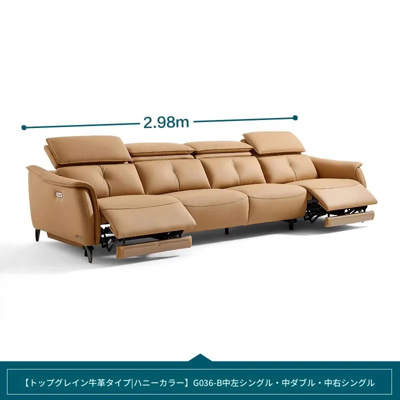 ⑳【ラグジュアリースタイル | ダブル電動 | 2.98メートル大三人用】ハニーカラーソファG036-B
