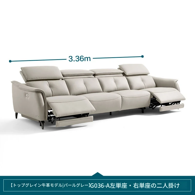 ⑪【シンプルスタイル | ダブル電動 | 3.36メートル大四人用】パールグレーソファG036-A
