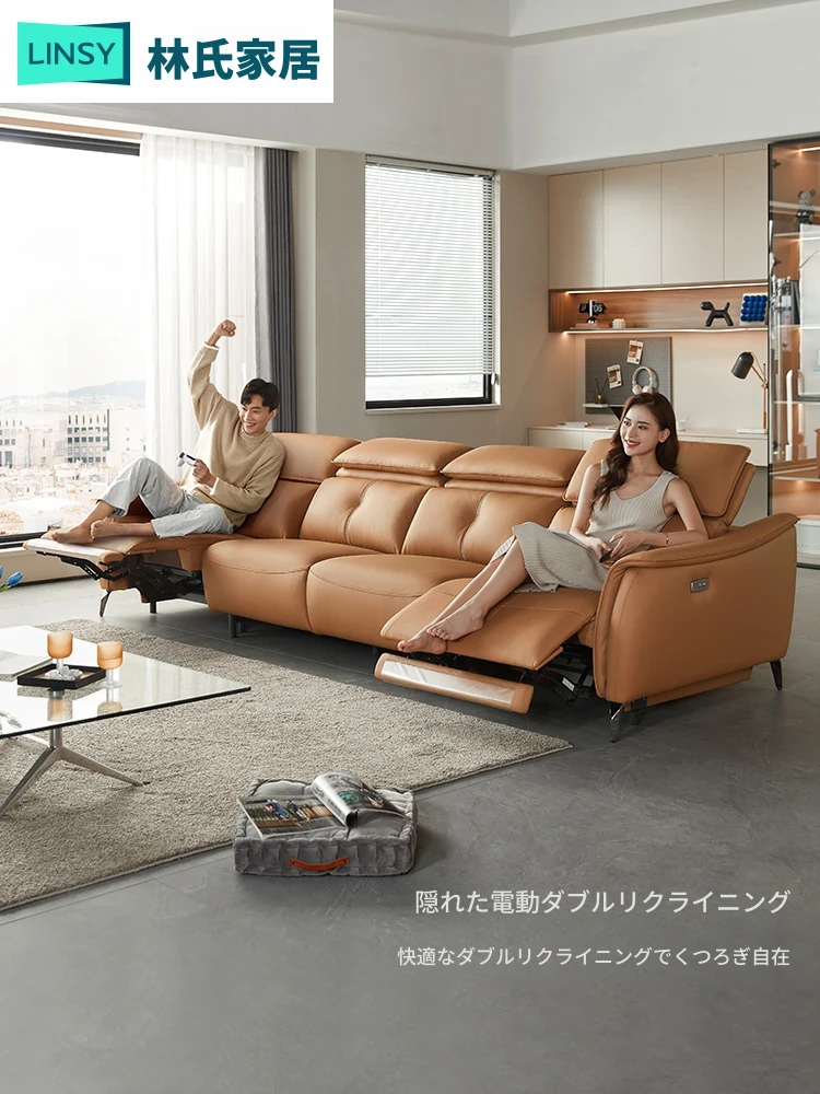 リンシホーム シンプルデザイン 本革リクライニングソファ 多機能電動チェア 高級感あふれる真皮家具 林氏木業 G036