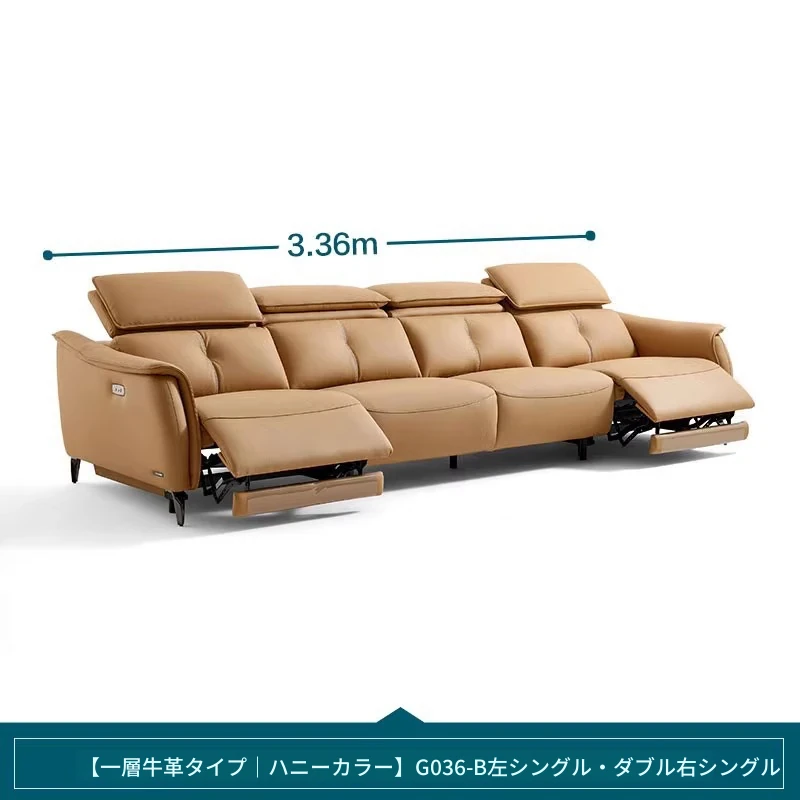 ㉒【ラグジュアリースタイル | ダブル電動 | 3.36メートル大四人用】ハニーカラーソファG036-B