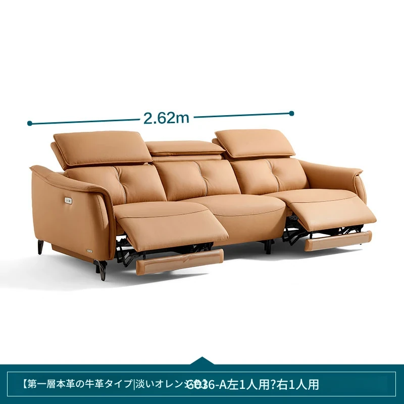 ⑧【シンプルスタイル | ダブル電動 | 2.62メートル三人用】ライトオレンジソファG036-A