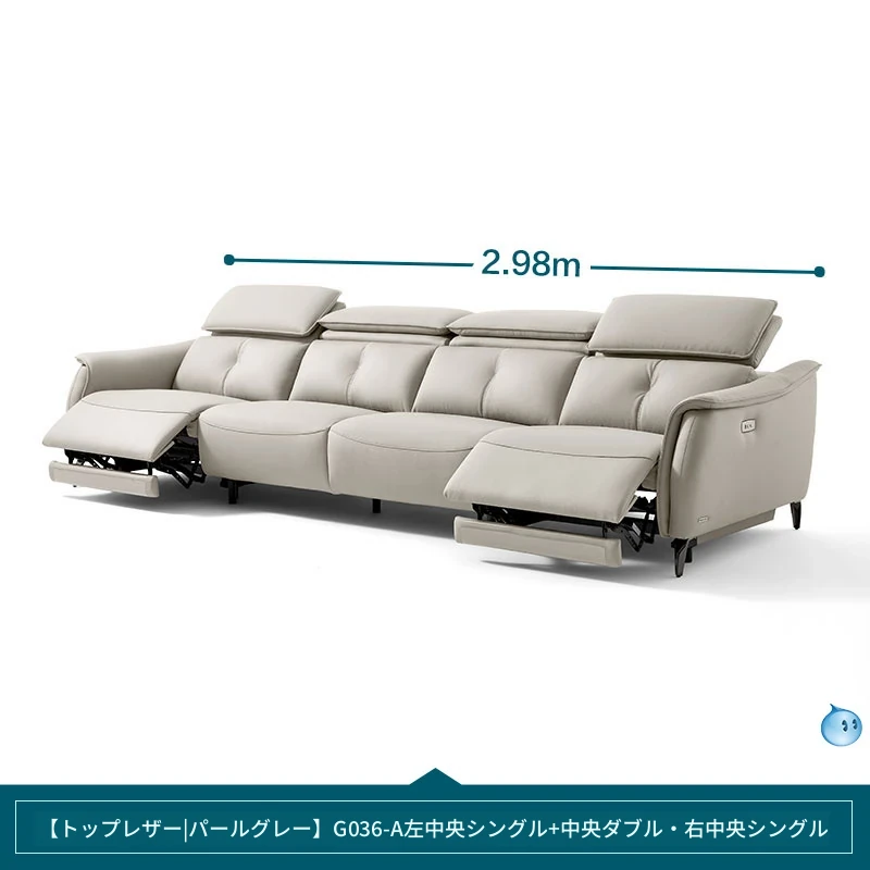 ⑨【シンプルスタイル | ダブル電動 | 2.98メートル大三人用】パールグレーソファG036-A