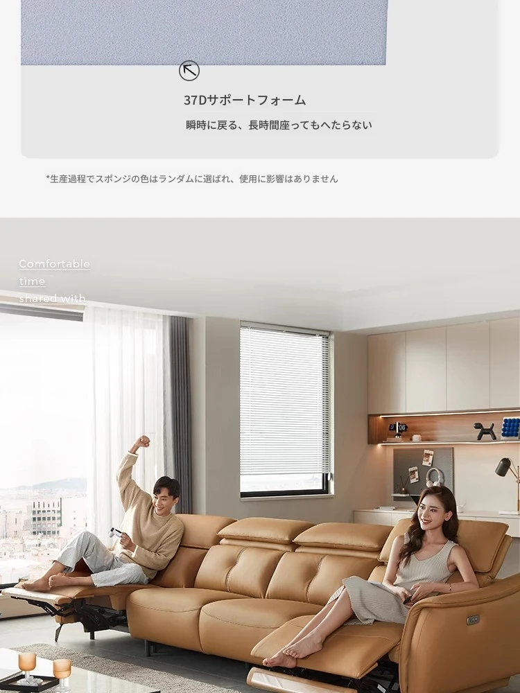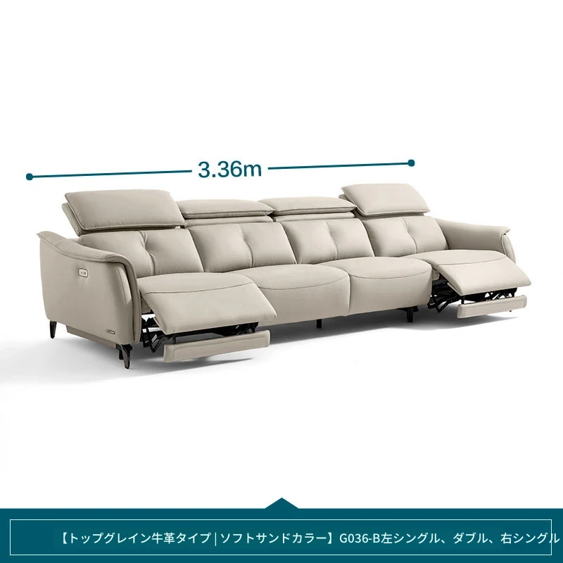 ㉑【ラグジュアリースタイル | ダブル電動 | 3.36メートル大四人用】ソフトサンド色ソファG036-B