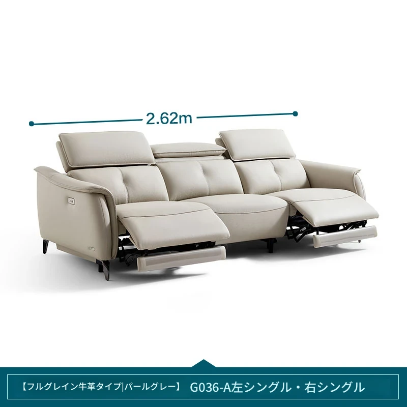 ⑦【シンプルスタイル | ダブル電動 | 2.62メートル三人用】パールグレーソファG036-A
