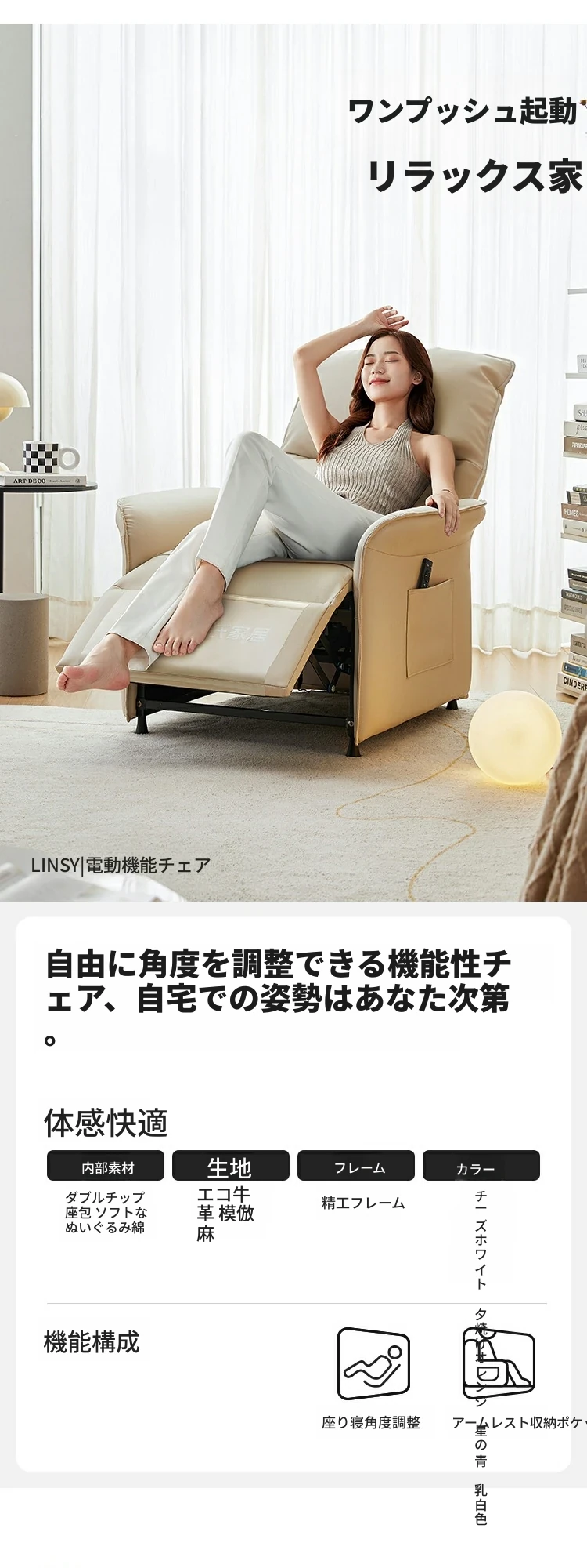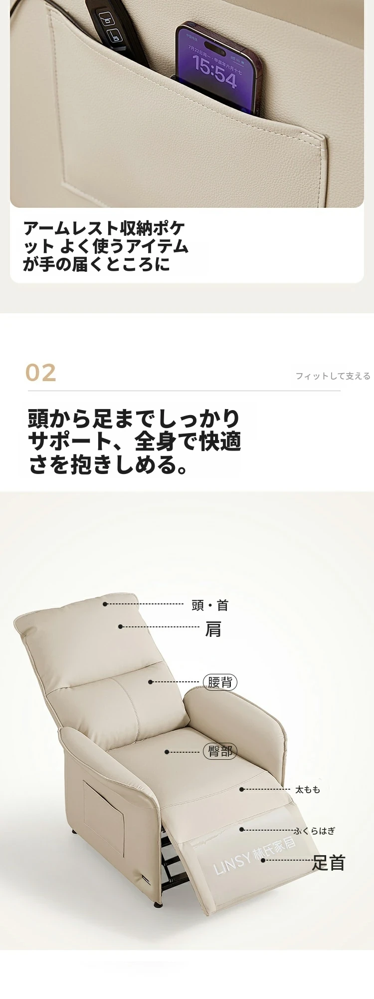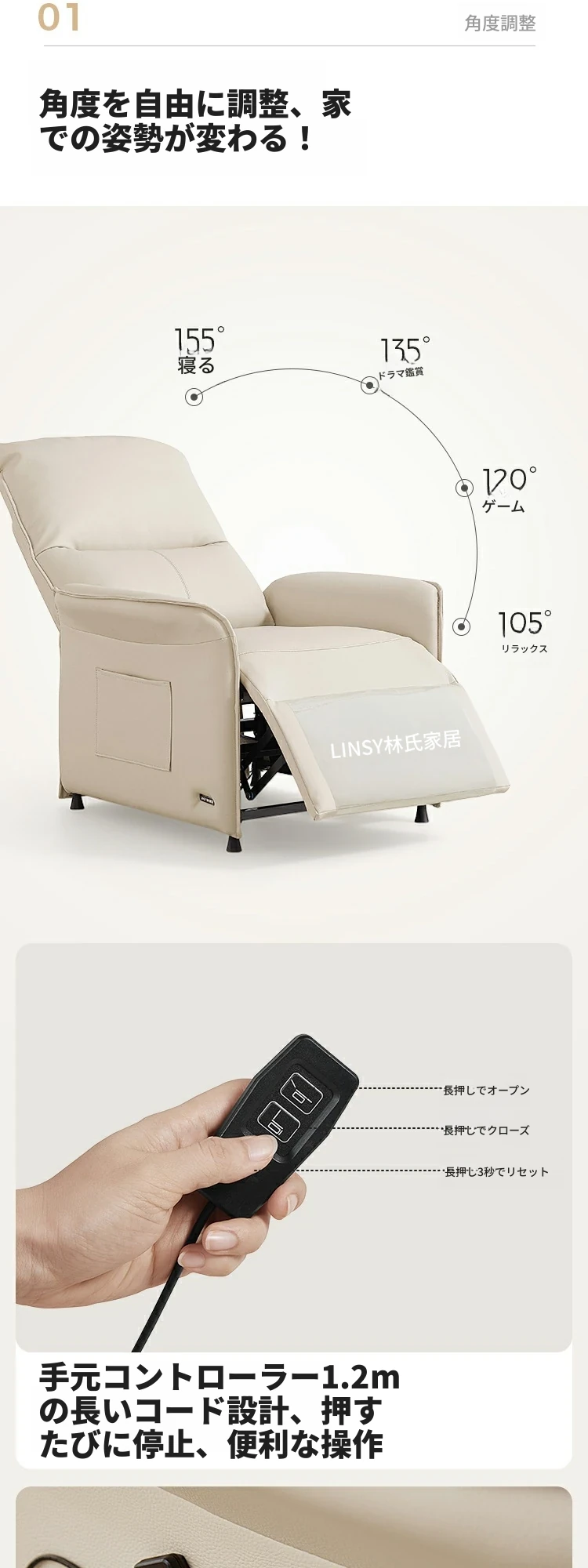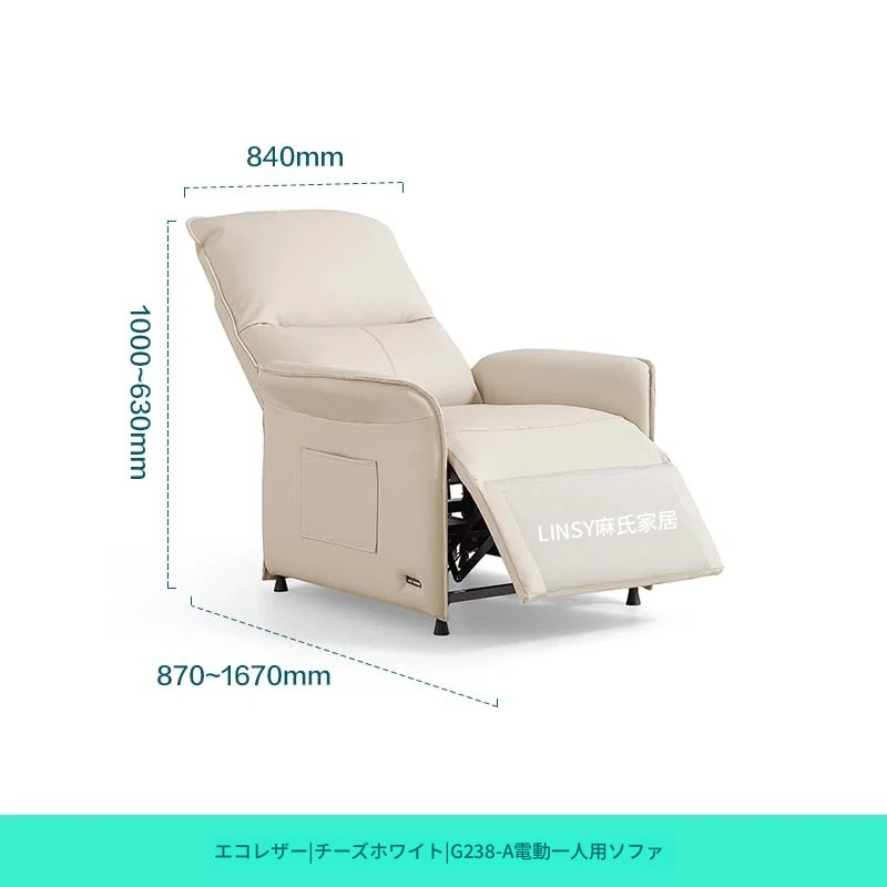 林氏家居の多機能レザー一人掛け電動ソファ - 新型調整可能な機能付き!快適さとスタイルを兼ね備えたG238モデルで、リラックスしたひとときをお楽しみください。