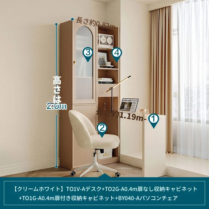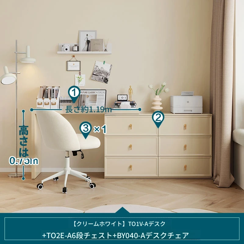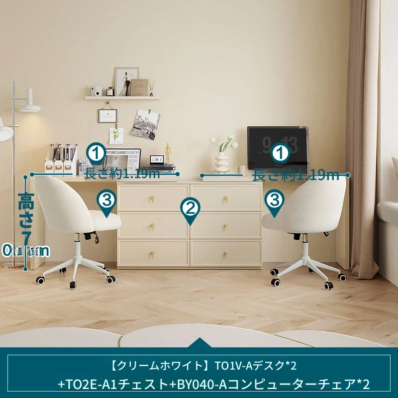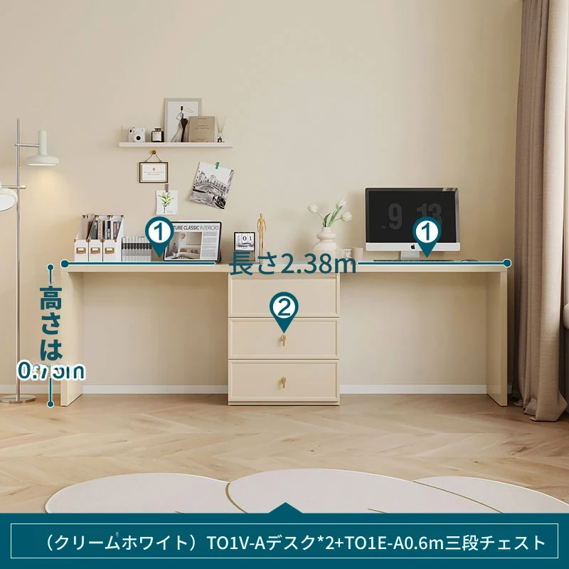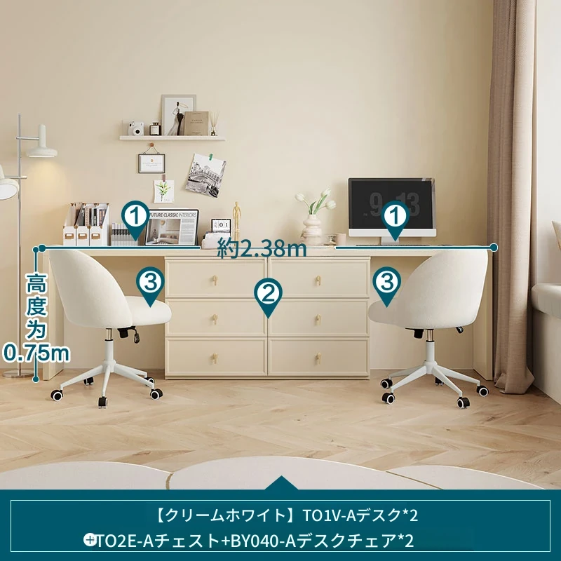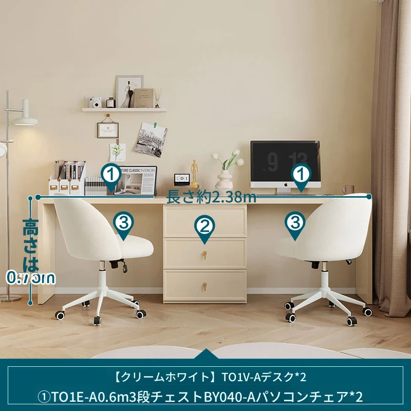 ⑧【2.4m|二人|六斗柜】伸縮デスク+椅子*2