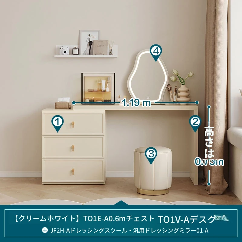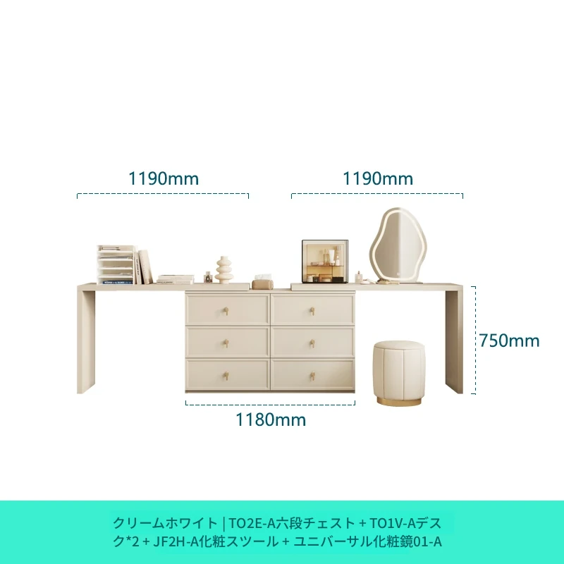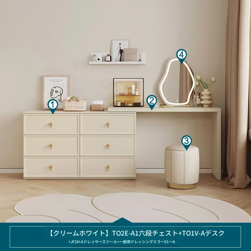 ①【伸縮|一人|六斗柜】ドレッサー+ドレッシングスツール+鏡