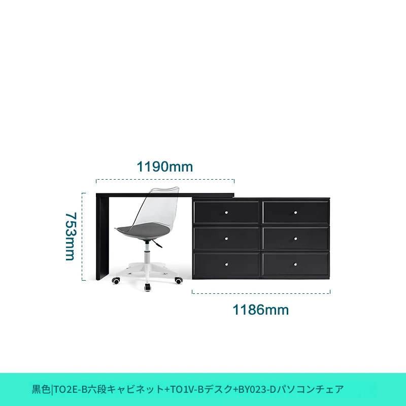 【17】「黒|伸縮|一人|六斗柜」ドレッサー+椅子B