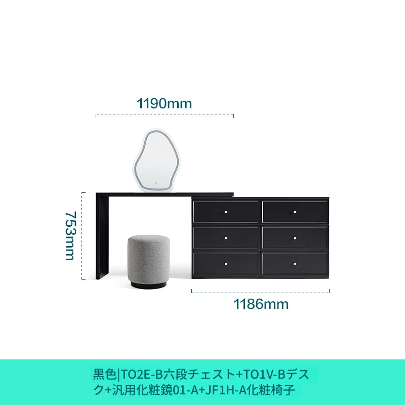 【14】「黒|伸縮|一人|六斗柜」ドレッサー+ドレッシングスツール+鏡
