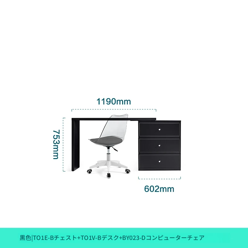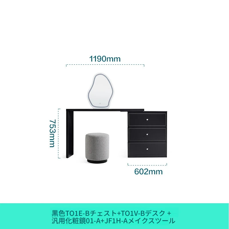 【16】「黒|伸縮|一人|三斗柜」ドレッサー+椅子B