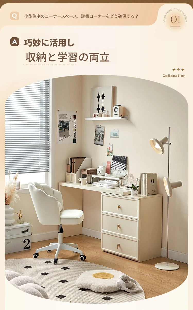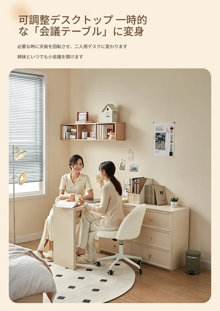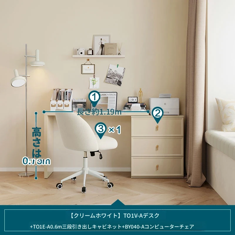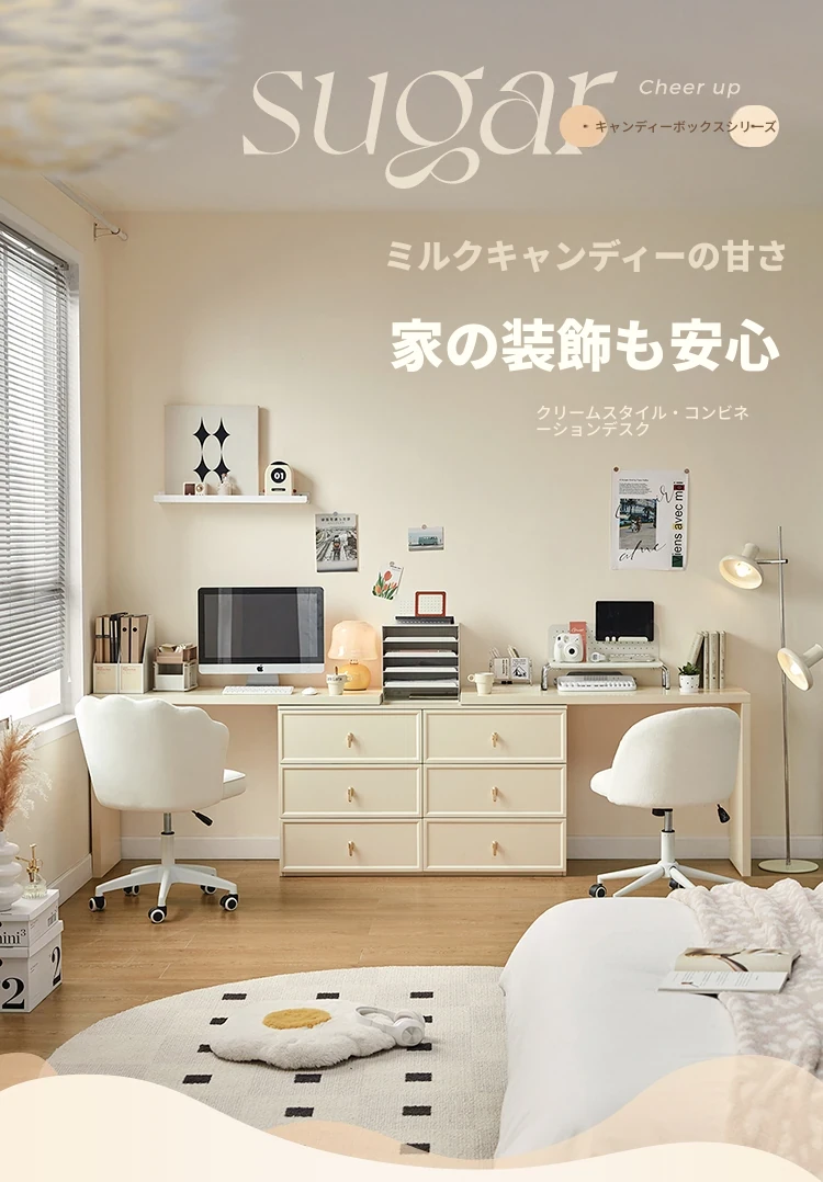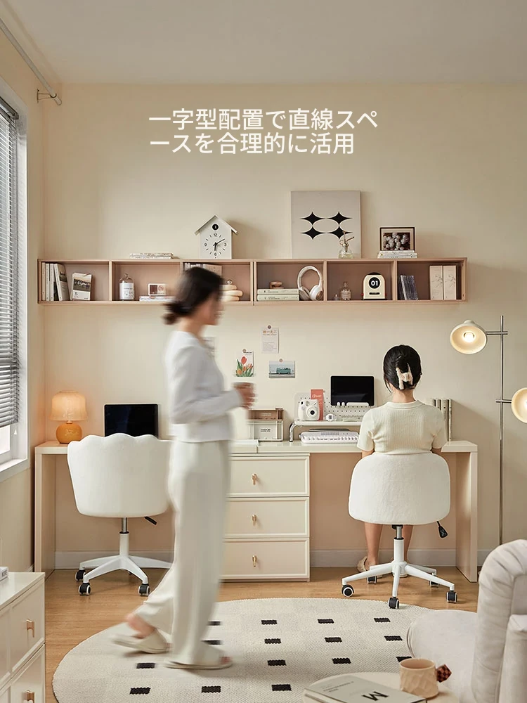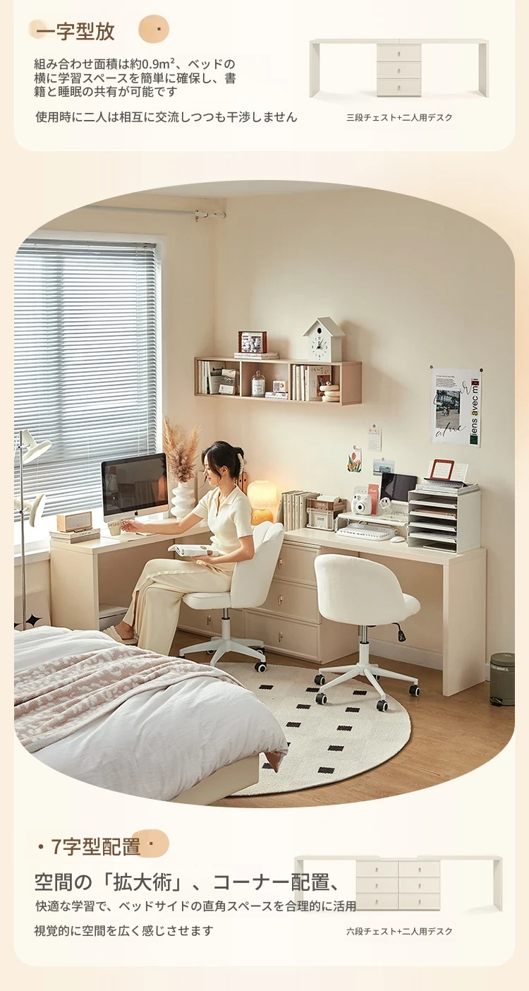 リン氏ホームのスタイリッシュなデスクとチェストセット|自宅学習やオフィスに最適なデザイン|学生向けの使いやすいダブルワークデスク|快適な書斎空間を実現!
