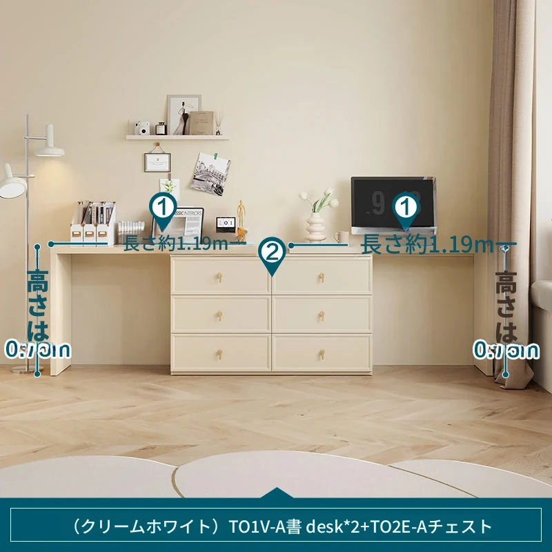 ⑦【2.4m|二人|六斗柜】伸縮デスク