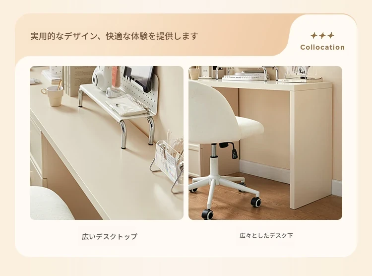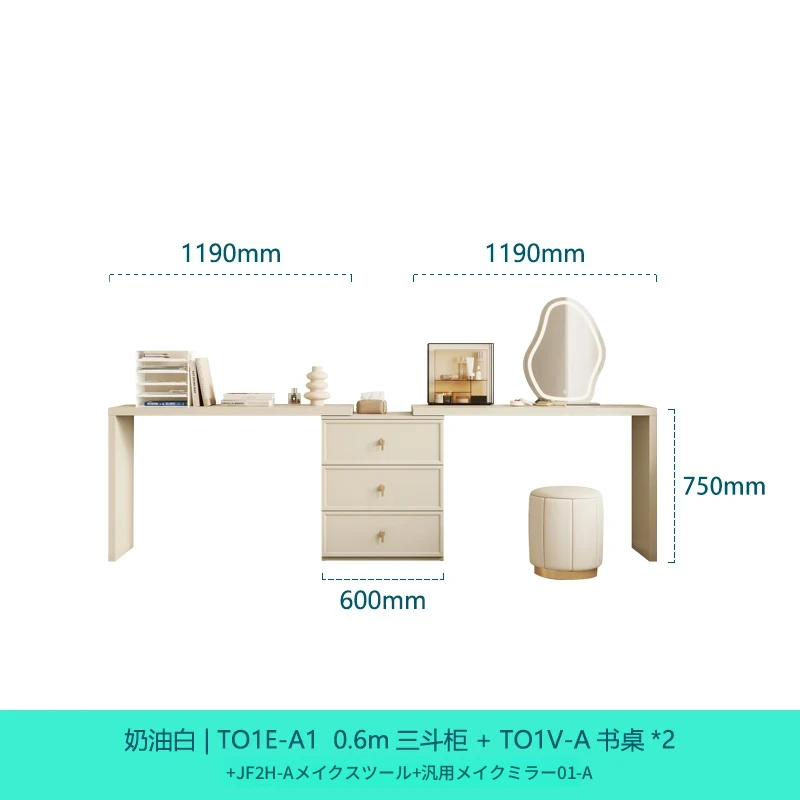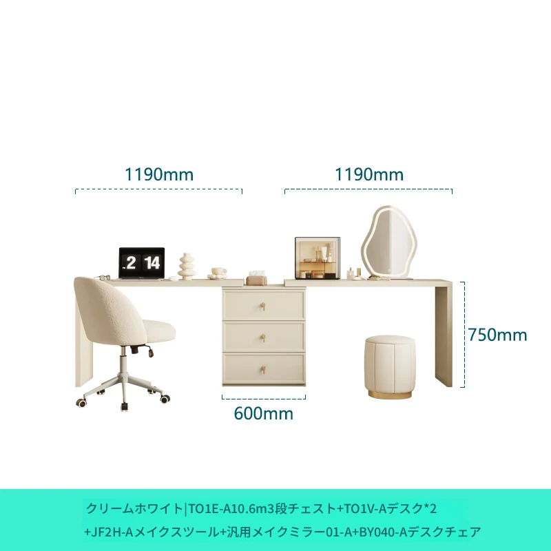 【総長1.5メートル】1.2メートルデスク+三斗柜+鏡+ドレッシングスツール