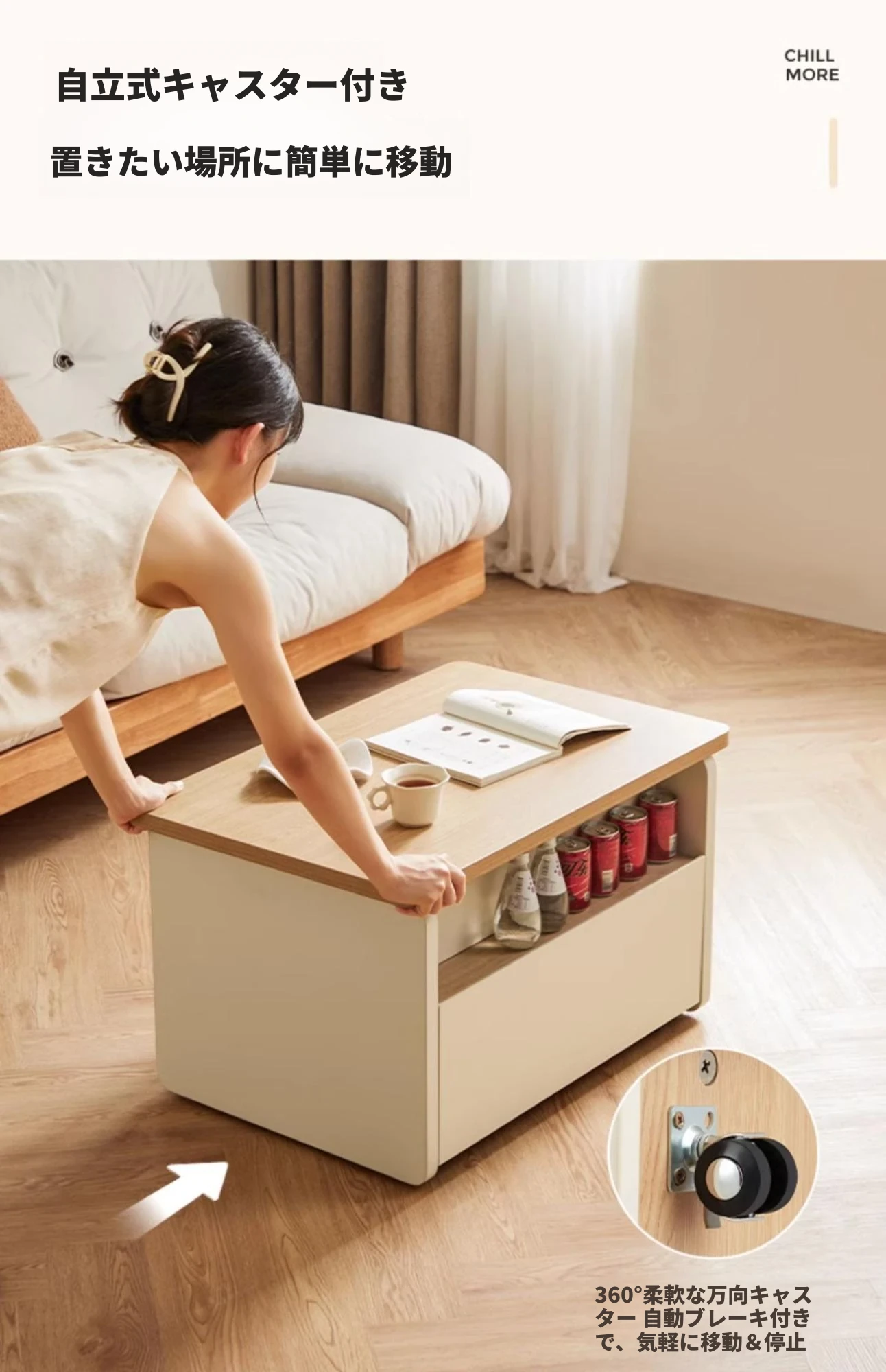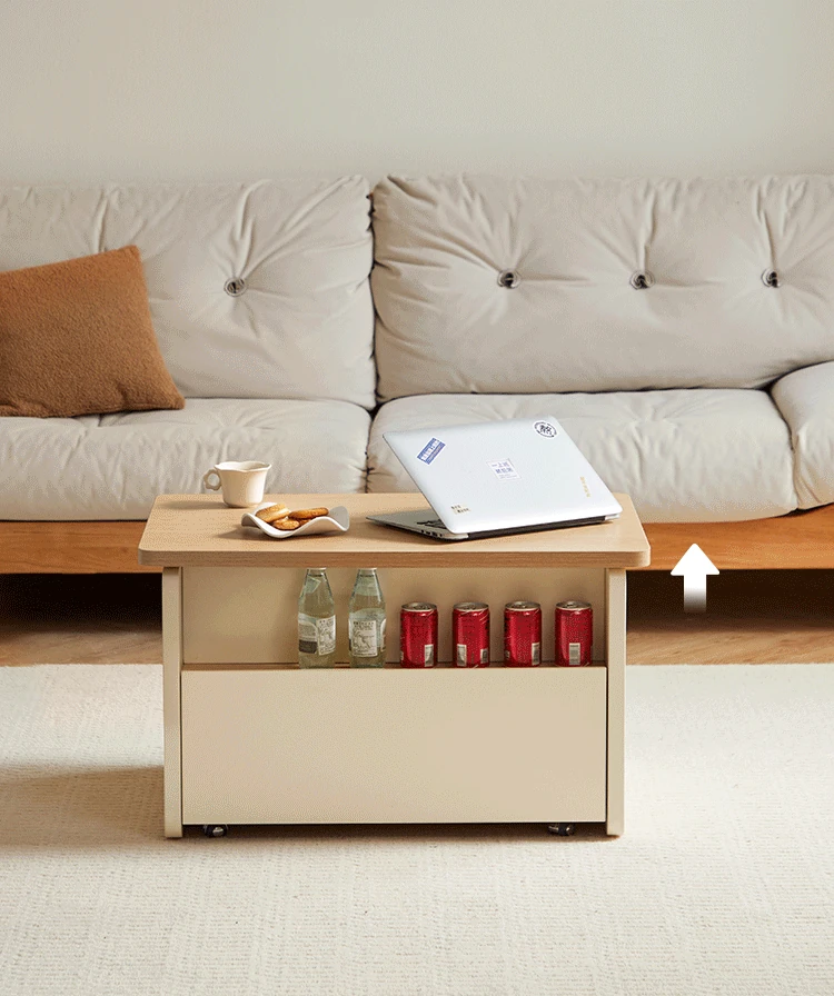 Linsy Home Adjustable Height移动 Coffee Table - Stylish Cream Aesthetic Side Table for Small Living Rooms and Sofas - Perfect for Modern Homes