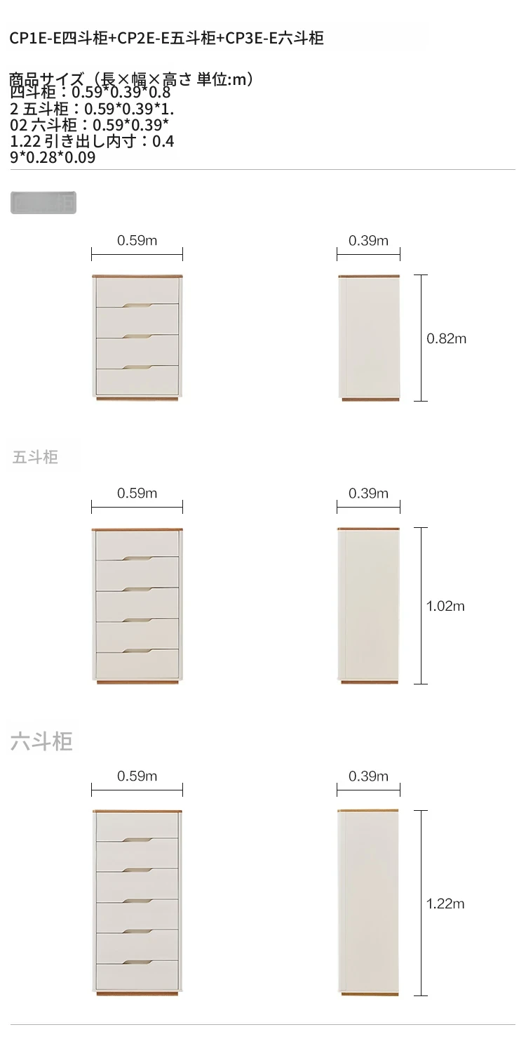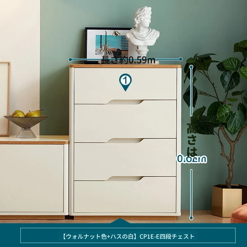【ウォールナット+ハスの白】CP1E-E四段チェスト