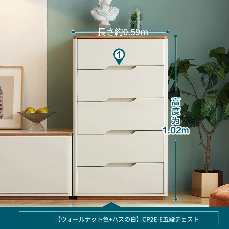 【ウォールナット+ハスの白】CP2E-E五段チェスト