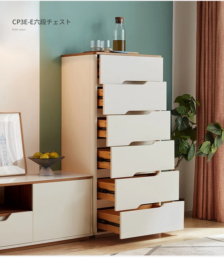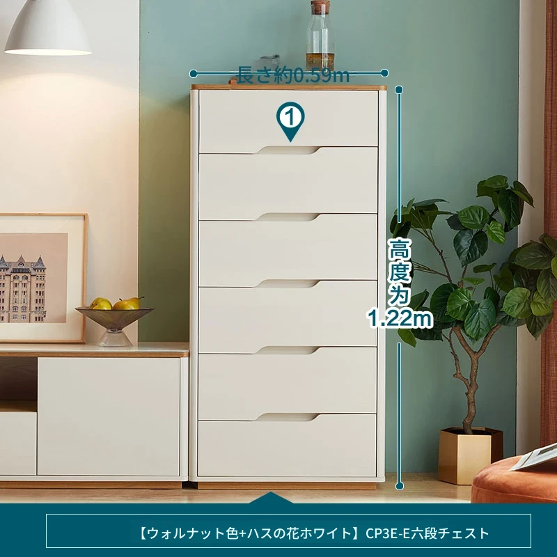 【ウォールナット+ハスの白】CP3E-E六段チェスト