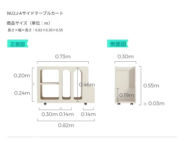 【クリームホワイト】NU2J-Aキャスター付きサイドテーブル【配送+設置】