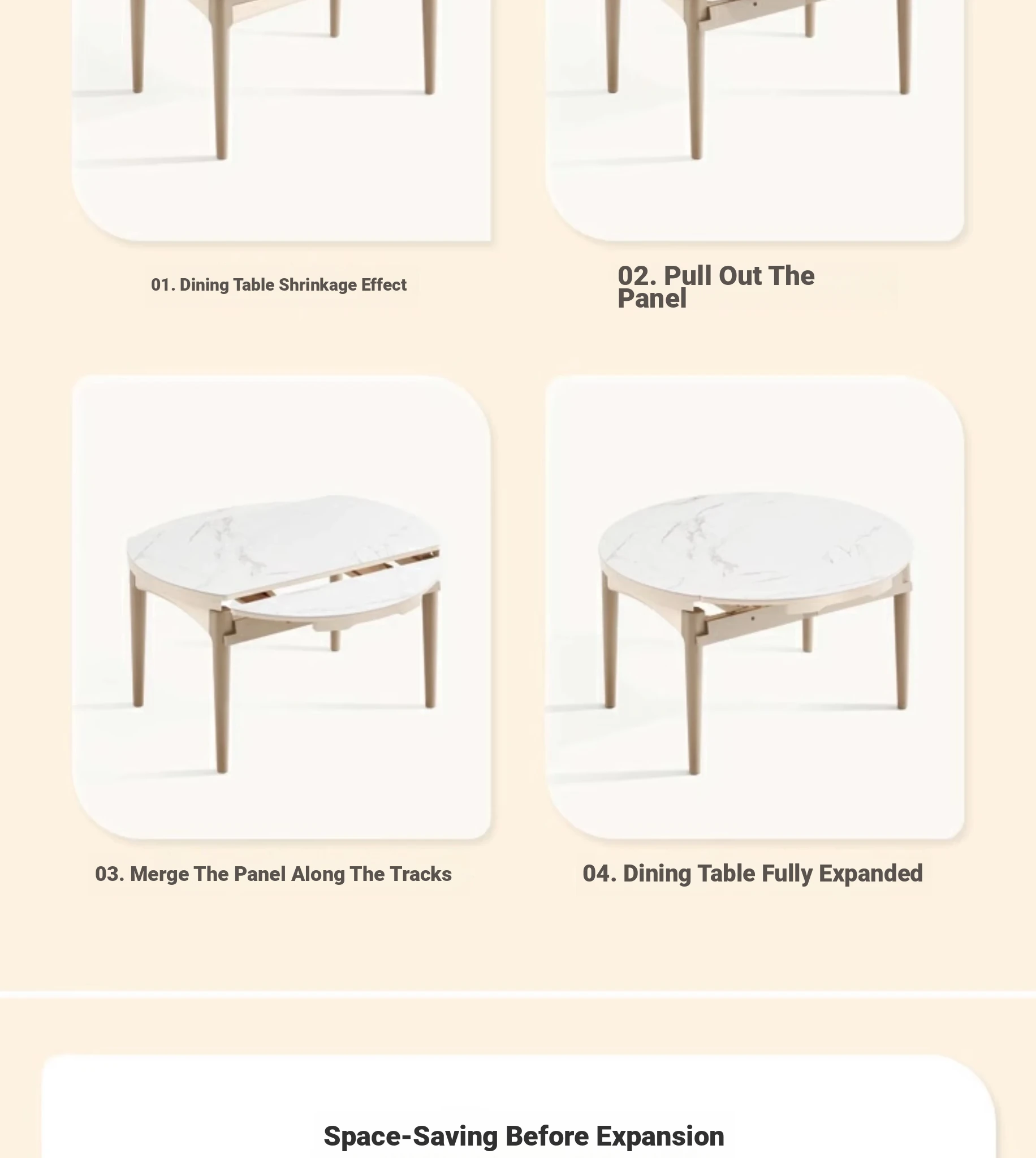 Linsy Modern Minimalist Solid Wood Dining Table with Expandable Stone Top - Elegant Round Dining Table and Chair Set for Small Spaces (Model PD1R)