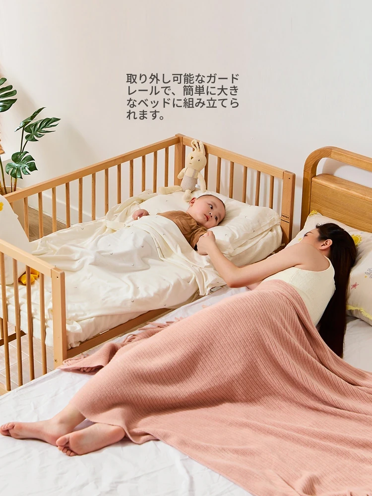 政府補助付き!林氏家居の赤ちゃん用ベビーベッド、組み合わせ可能な大床、全て無垢材使用の多機能移動式ベビーベッド。赤ちゃんの快適な眠りをサポートします!
